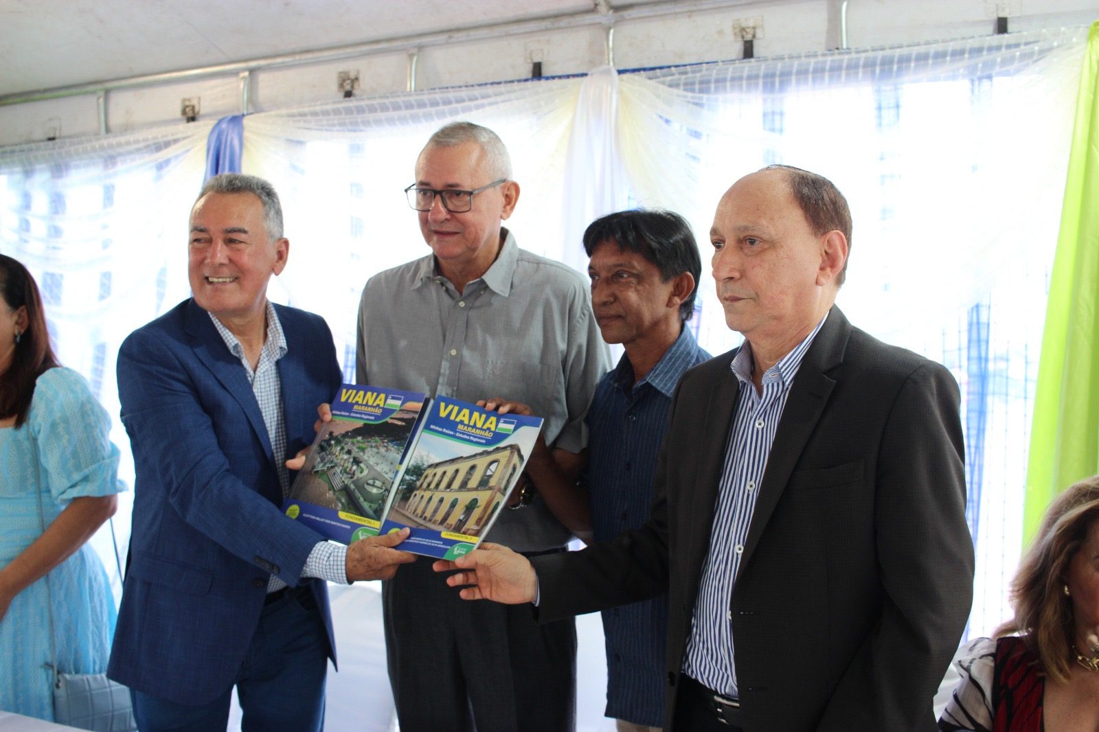 Durante a cerimônia, foi lançado o livro didático “Minhas Raízes”, que narra a história de Viana, destacando a importância da preservação da memória local. A nova sede da Secretaria da Cidade e Turismo foi inaugurada na Rua Antônio Lopes, nº 35, anexa à Biblioteca Municipal Ozimo de Carvalho, no famoso Canto do Galo, onde funcionava o Fórum de Justiça de Viana. Este espaço abrigará atividades laborais, exposições e comercialização de artesanatos em parceria com a Associação dos Artesãos Vianenses, promovendo a cultura e visibilidade dos artistas locais. O prefeito Carrinho destacou a importância das inaugurações: “é uma alegria entregar estas obras tão importantes para a sociedade vianense. Reinaugurar a biblioteca pública significa resgatar a nossa história. A biblioteca e a Secretaria adjunta da Cidade e Turismo têm um valor que vai além do espaço físico, mas, acima de tudo, o valor imaterial, pois não tem forma melhor de conhecer a cidade de Viana e sua história do que lendo um livro e visitando os pontos turísticos,” destacou.